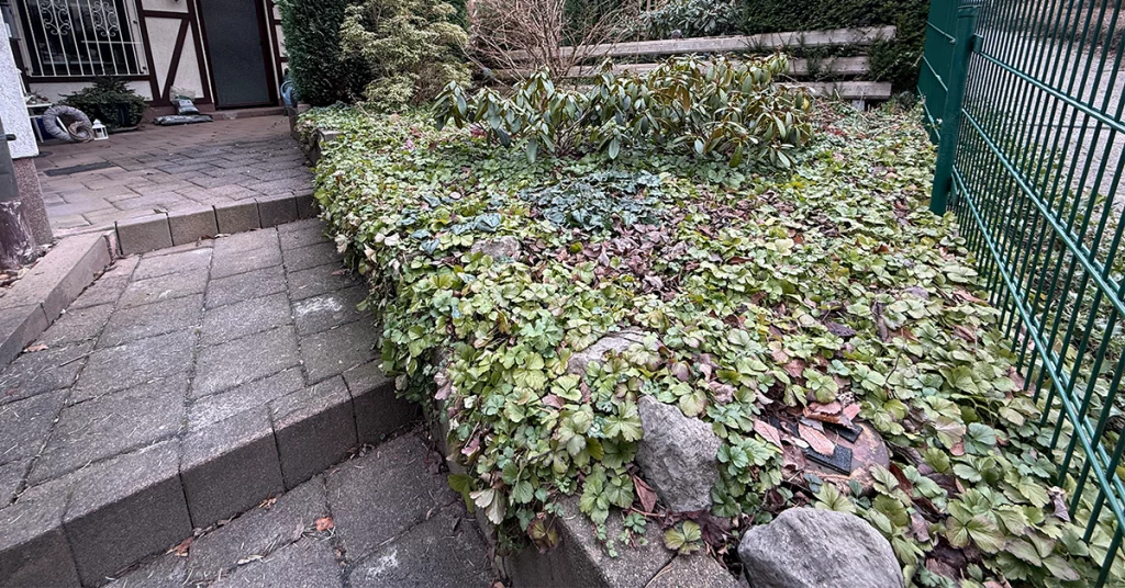 Als wir 2025 in das Haus zogen, haben wir den Garten das ganze Jahr über erst einmal sich selbst überlassen. Es gab genug andere Dinge zu erledigen. Im Januar 2026 soll nun etwas Hand angelegt werden. Grob läßt sich der Garten in vier Bereiche unterteilen.
