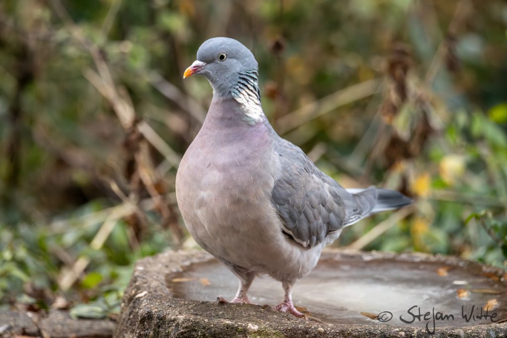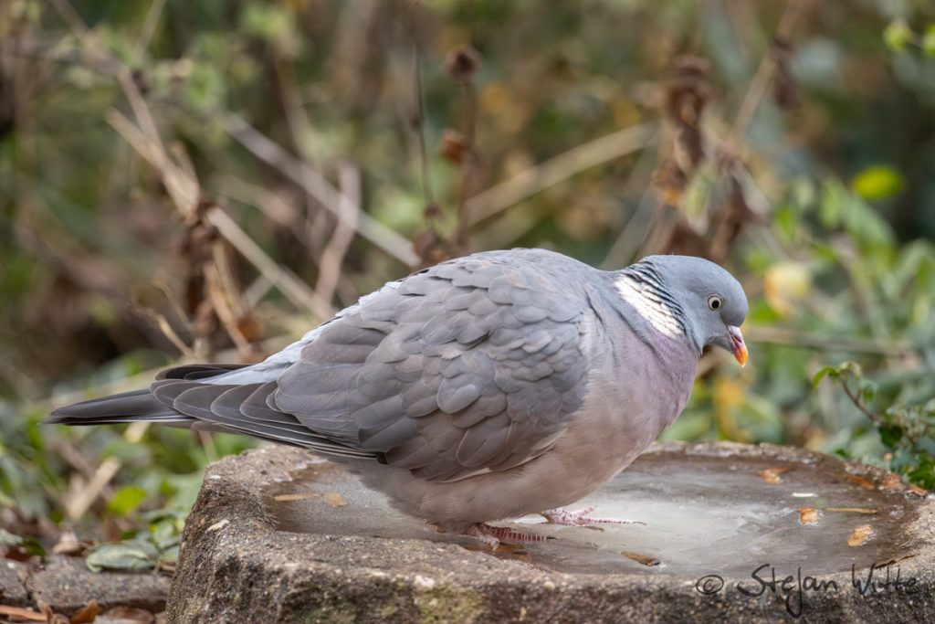 Tauben genießen keinen guten Ruf. Das ist vor allem den verwilderten Tauben in unseren Innenstädten zu verdanken. Die Ringeltaube ist aber ein einheimischer Wildvogel und bevorzugt lichte Wälder, Auen und Parkanlagen. Sie ist die größte Taubenart Mitteleuropas. An unserem Futterhaus ist sie ein ständiger Gast und tritt immer paarweise auf. Die Geschlechter sind kaum zu unterscheiden. Meist sind die Männchen etwas kräftiger und minimal größer. An der Brust sind sie ein wenig mehr rötlich gefärbt.